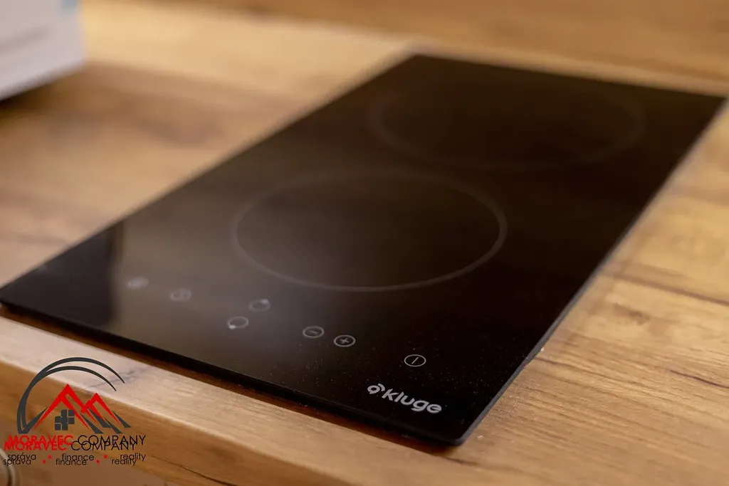 Vybavení bytu zahrnuje kuchyň s elektrickou troubou, indukční varnou deskou, digestoří, zabudovanou lednicí a mikrovlnnou troubou. Koupelna je vybavena sprchovým koutem, pračkou a WC. Ohřev vody zajišťuje elektrický bojler.