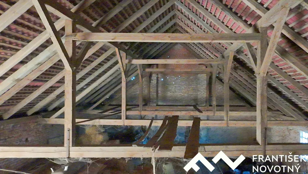 Uzavřený dvůr s průjezdem zajišťuje klid a soukromí. Součástí domu jsou hospodářské budovy s těmito místnostmi: garáž, dílna, černá kuchyně, chlívy, podzemní sklep a velká stodola s novou střechou – perfektní na parkování aut, hobby, nebo přestavbu k modernějšímu využití.