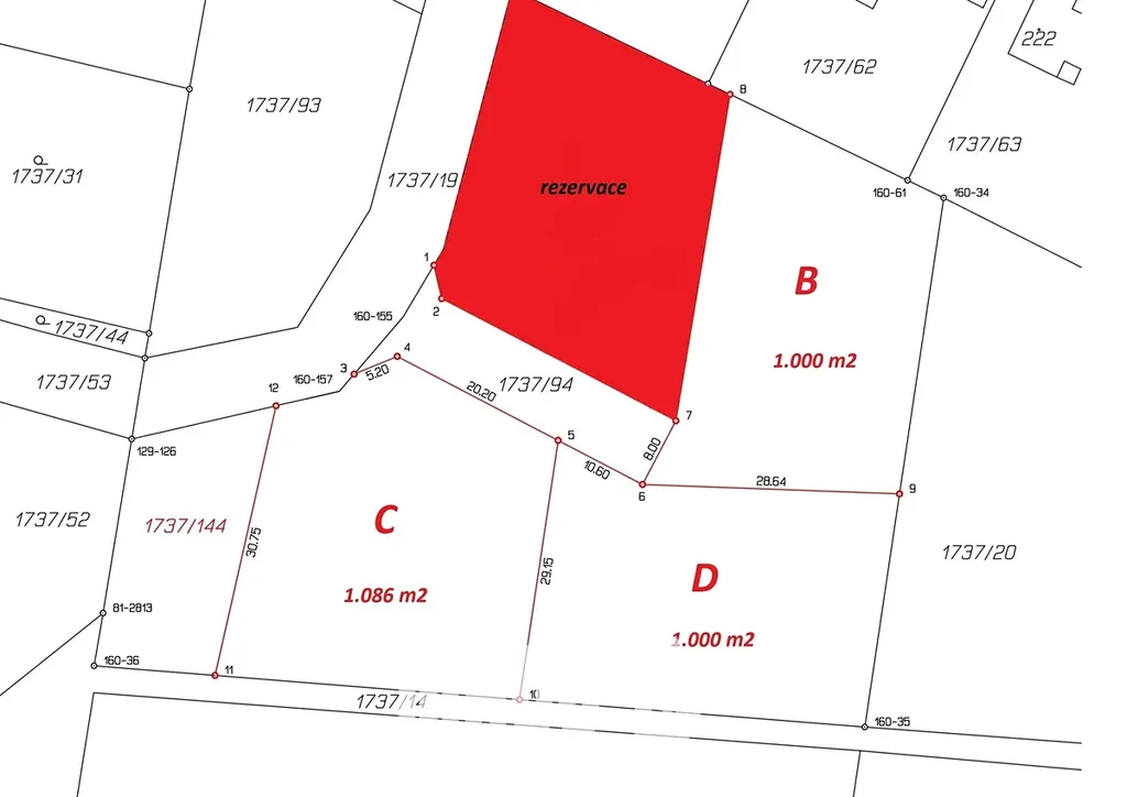 Poslední 3 stavební parcely o velikosti 1000 - 1134m2 s orientací na JZ. Inženýrské sítě elektro, voda a kanalizace splašková a dešťová jsou v komunikaci, na kterou přiléhá pozemek D nebo sjezd pro parcely B a C. Parcely jsou určené k individuální výstavbě rodinného bydlení v obci Oldřichov, která je 1,8 km vzdálená od Písku. Financování na koupi, tak i pro výstavbu domu Vám zajistíme. Parcely C a D čekají letos na propsání změny územního plánu, kdy budou celé stavební.