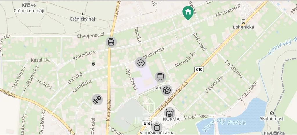 Byt se nachází v tiché a bezpečné vilové čtvrti s výbornou dopravní dostupností. Autobusová zastávka je vzdálena pouze 4 minuty chůze, ke stanici metra se dostanete za 15 minut. Okolí navíc nabízí mnoho možností pro aktivní odpočinek – cyklostezky, golfové hřiště či příjemné procházky v přírodě.