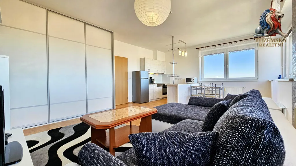 Pronájem pěkného velkého bytu 1+kk s balkónem a parádním výhledem na Jeseníky a Uničov ze všech oken.