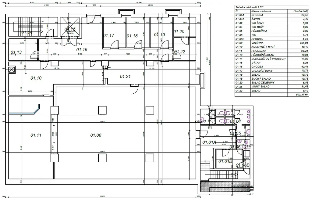 Vinárna má kapacitu 150 osob a její součástí je prostorný bar, salónek pro menší skupiny hostů a veškeré zázemí potřebné pro provoz restaurace – kuchyň, skladové prostory, šatna pro zaměstnance a sociální zařízení. Prostory jsou vybaveny vlastní klimatizací a VZT, policemi, regály, stoly a židlemi. Vinárna je skvěle dopravně dostupná – vedle budovy se nachází parkoviště pro hosty restaurace a před budovou je zastávka MHD.