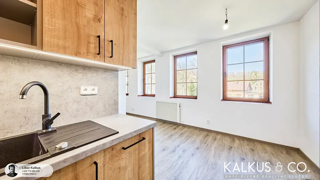 Hledáte místo pro odpočinek v horách nebo zajímavou investiční příležitost v Krkonoších? Nabízíme k prodeji kompletně zrekonstruovaný (2026) apartmán o dispozici 3+kk, 46.44 m2 se dvěma samostatnými pokoji a výhledem do zahrady v menším apartmánovém domě v klidné části obce Svoboda nad Úpou – Nový Svět.