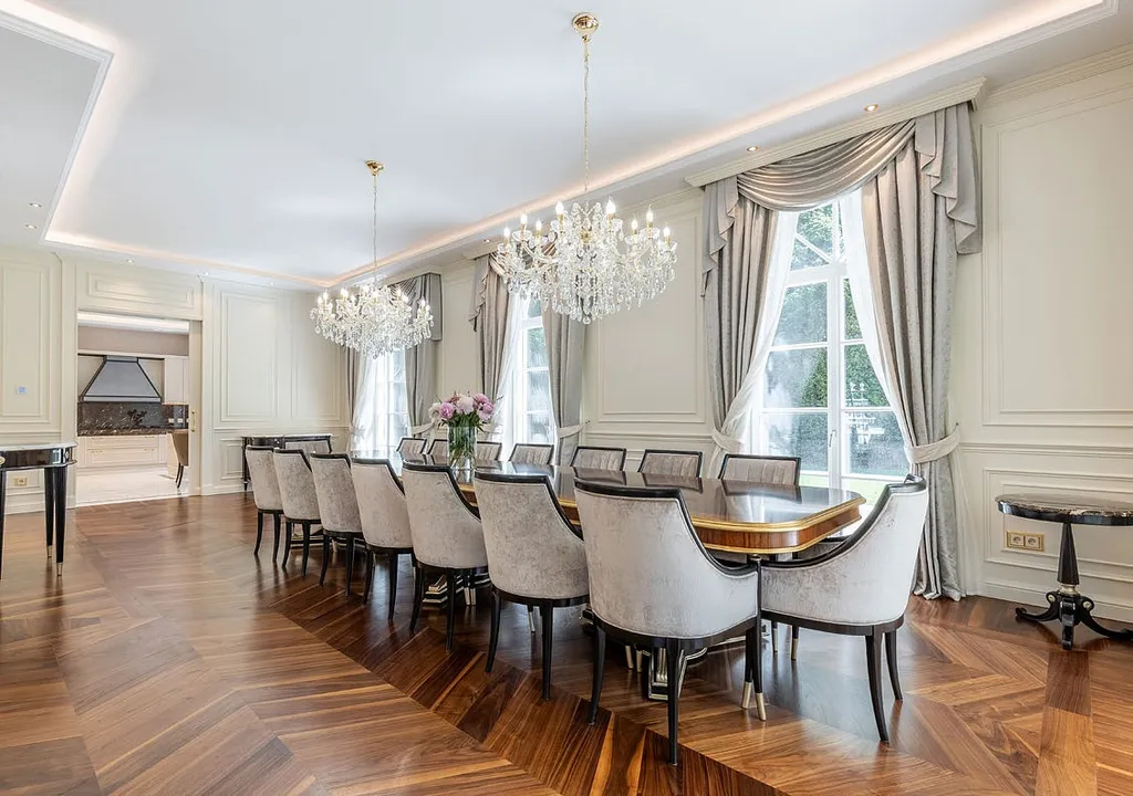 Vila byla dokončena v roce 2025 a nabízí cca 504 m² obytné plochy, cca 731 m² užitné plochy a pozemek o velikosti 3 415 m². Dům je kompletně zařízen designovým nábytkem a prodává se včetně mobiliáře, takže je možné nemovitost využívat ihned po koupi bez dalších investic do vybavení.
