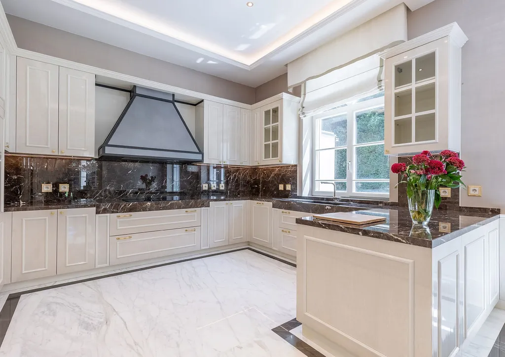 Silný dojem vytvářejí architektonické i interiérové prvky: reprezentativní vstup, přírodní kámen, podsvícená mramorová schodiště, kruhový prosklený výtah, kvalitní vestavěné prvky, promyšlené osvětlení, velká okna a přímé propojení interiéru se zahradou.