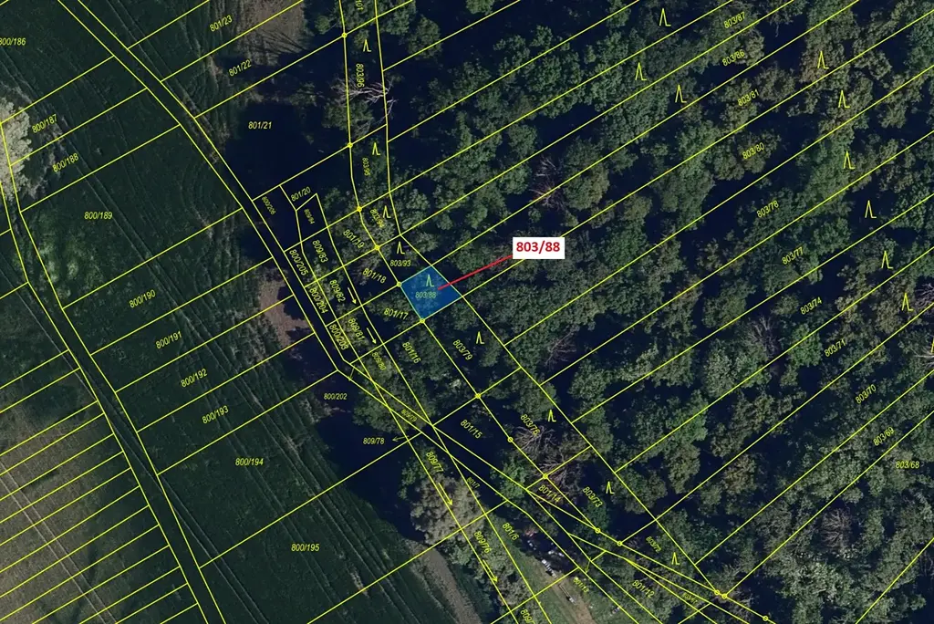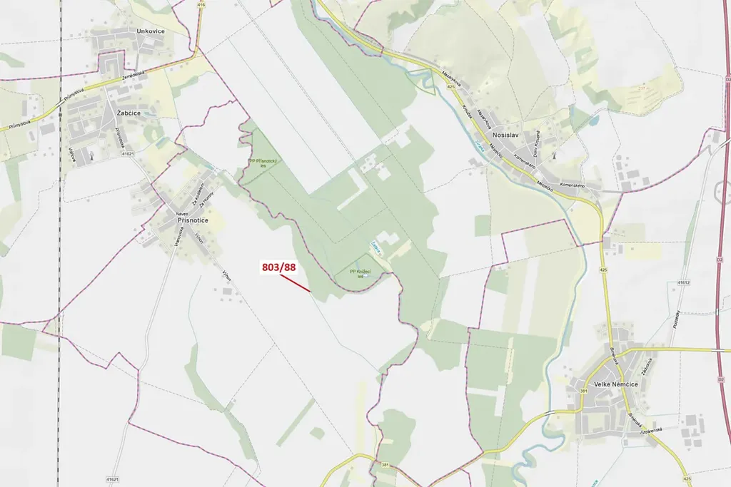 Lesní pozemky o výměře 107 m2, parcelní číslo 803/88, podíl 1/1, katastrální území Přísnotice, obec Přísnotice, obec s rozšířenou působností Židlochovice, okres Brno-venkov, Jihomoravský kraj.