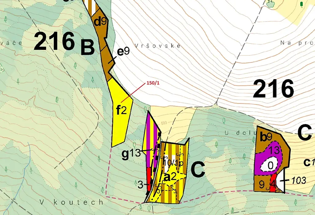 Lesní pozemek o výměře 6169 m2, parcelní číslo 150/1, podíl 1/1, katastrální území Krásné, obec Krásné, obec s rozšířenou působností Chrudim, okres Chrudim, Pardubický kraj.