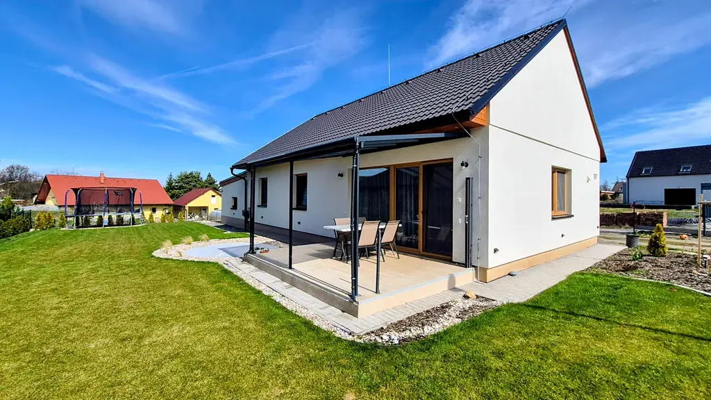Nabízíme k prodeji moderní, nízkoenergetickou novostavbu rodinného domu 4+KK z roku 2024 v klidné lokalitě Slatiňany – Škrovád. Samostatně stojící zděný dům o užitné ploše 108 m² na pozemku 745 m² disponuje prosvětleným obývacím pokojem s kuchyní na míru, francouzskými okny se vstupem na terasu, třemi pokoji a kvalitním sociálním a technickým zázemím. Komfort zajišťuje podlahové vytápění s tepelným čerpadlem, automatické zavlažování zahrady a pro maximální pohodlí je na domě instalována kamera umožňující dálkové otevírání brány.