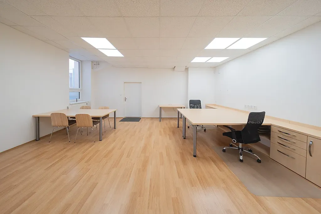 Součástí kanceláře je kuchyňka, WC je umístěno ve společných prostorách budovy.