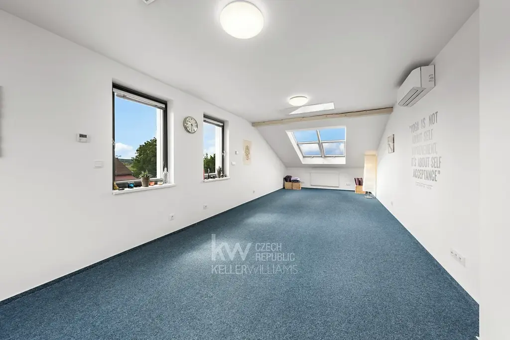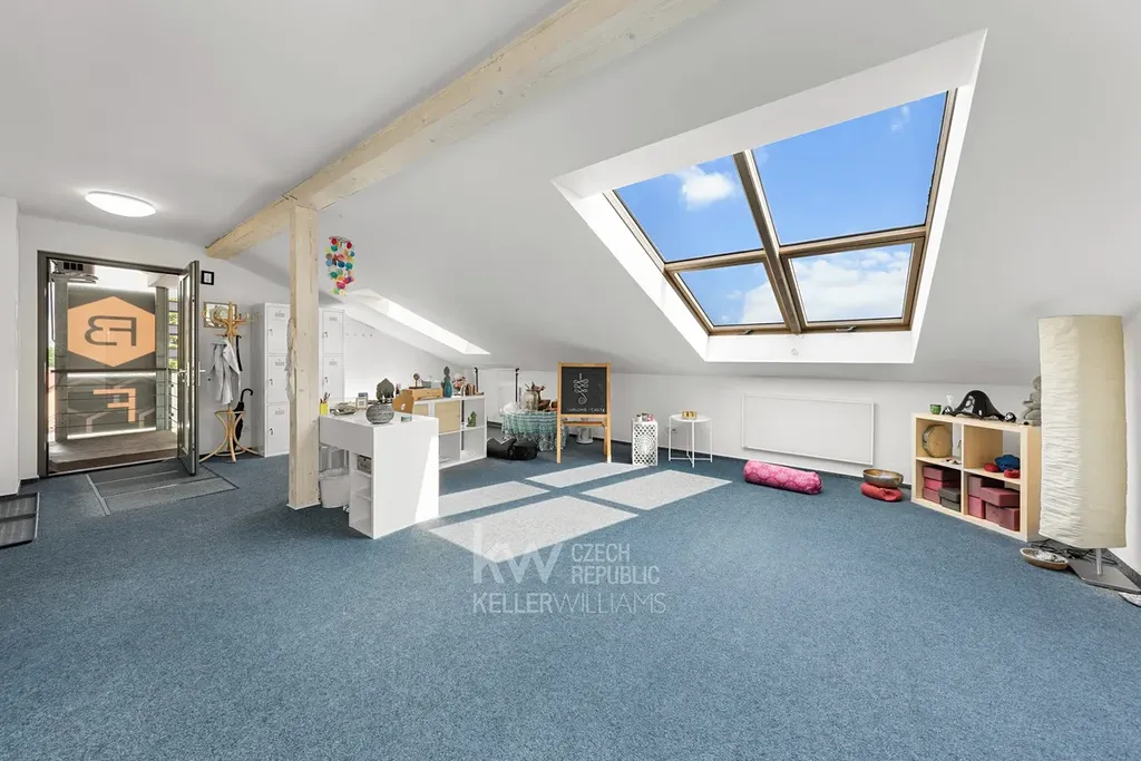 V podkroví dlouhodobě funguje oblíbené jógové studio a vedle něj na patře je další bytová