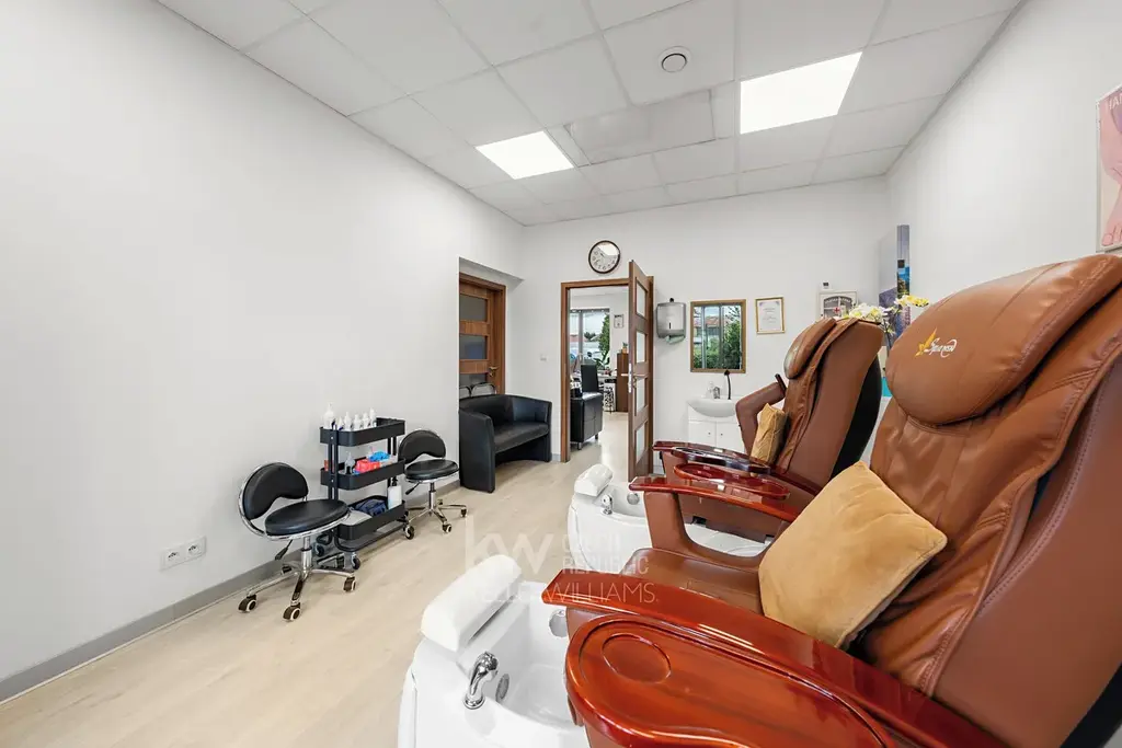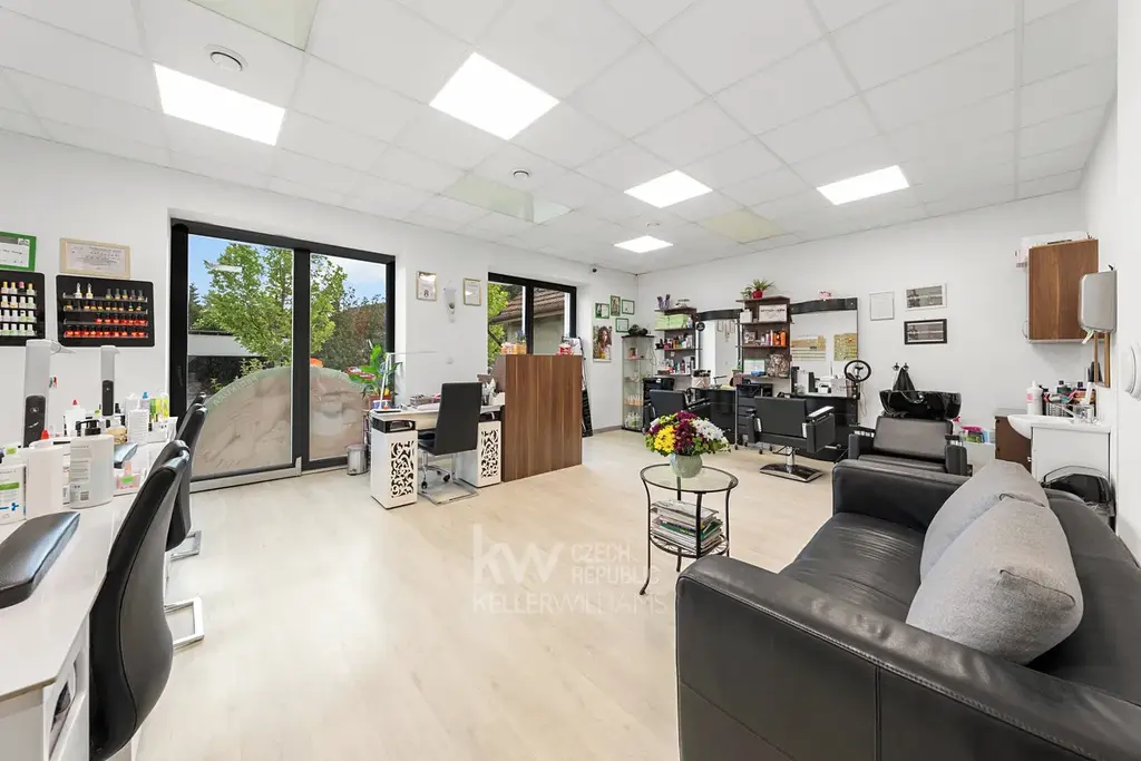 Přízemí nabízí moderní nehtové studio. Součástí je i kadeřnický salon. Oba podniky se mohou pochlubit