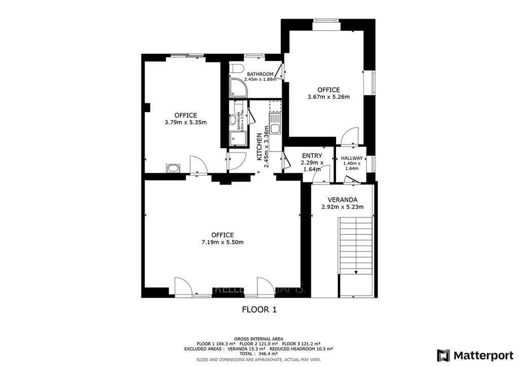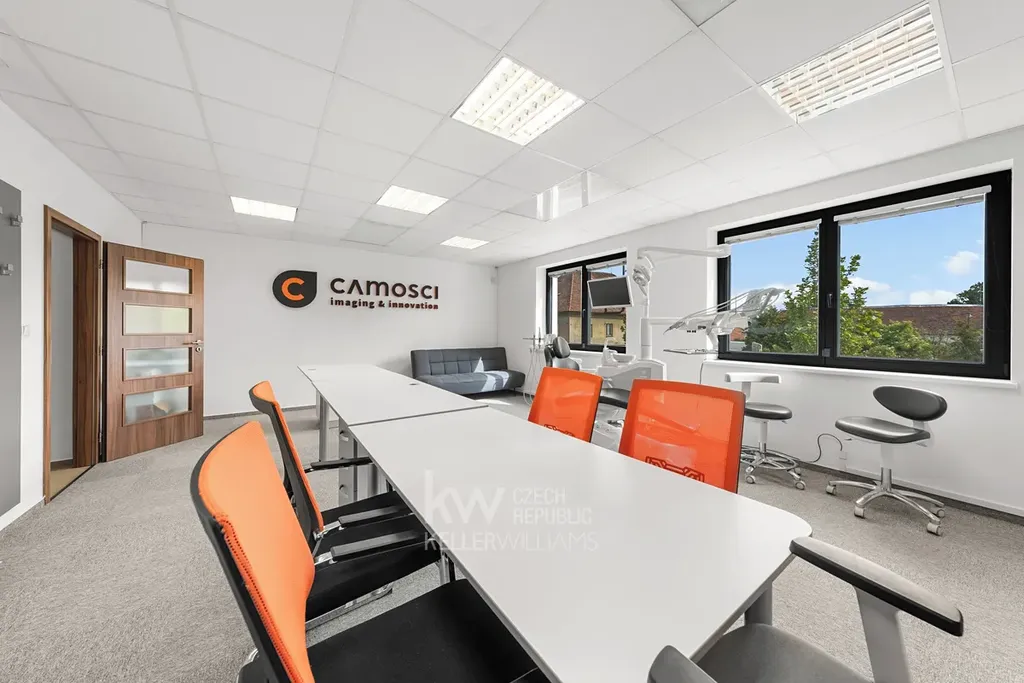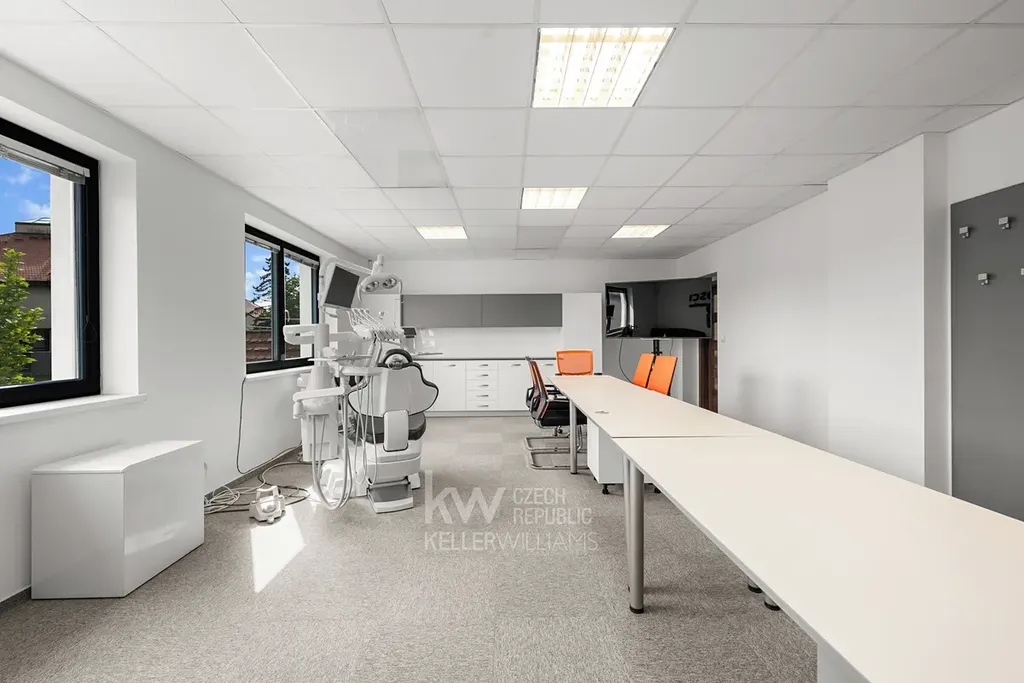 V prvním patře sídlí zavedená firma zabývající se vybavením zubních ordinací. Vedle ní na patře se nachází