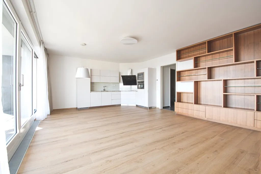Nabízíme k pronájmu moderní byt se dvěma parkovacími stáními v rezidenci Villa City View na Praze 5 - Smíchov. Tento byt 3+kk (96,5 m² ) má terasu (6 m² ) s krásným výhledem na město, je umístěn v 1. patře a je s bezbariérovým přístupem jak ze vstupu do Rezidence, tak z garáže. Dispozičně byt nabízí vstupní chodbu s úložným prostorem, velký obývací pokoj spojený s jídelní částí a kuchyní a se vstupem na terasu, 2 ložnice, z toho hlavní ložnice má vlastní koupelnu se sprchou a toaletou, dále druhou koupelnu s vanou a toaletou. V ložnicích jsou vestavěné skříně, obývací pokoj je vybaven designovým policovým systémem. Moderní kuchyňská linka je vybavena spotřebiči, varnou deskou Küppersbusch se systémem Vok, lednicí s mrazákem, myčkou a troubou. Na podlahách jsou kvalitní parkety a dlažba. Byt je vybaven venkovními roletami ve všech pokojích, má bezpečnostní dveře, alarm a patří k němu jedno garážové stání v podzemní garáži, jedno venkovní parkovací stání a velký sklep. Dům je situován v klidné lokalitě Prahy 5, nabízí dostatek soukromí a příjemné bydlení. Výborné spojení autem a MHD k obchodnímu centru Anděl, kde je stanice metra a tramvají, do centra města, na letiště Václava Havla, do mezinárodních škol.