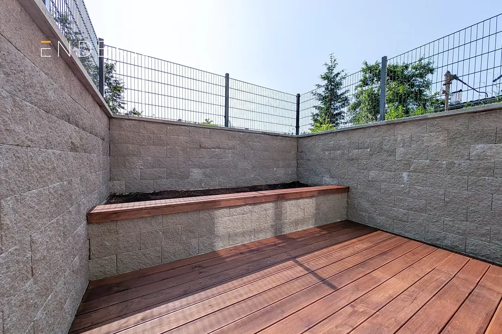 Velkým benefitem je prostorná terasa, která přirozeně rozšiřuje obytný prostor. Nabízí ideální místo pro relaxaci, práci na čerstvém vzduchu nebo například pěstování bylinek či drobných rostlin.