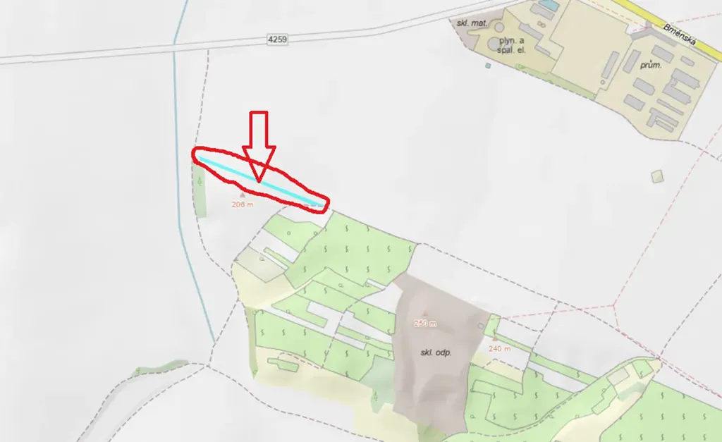 - p.č. 879/5 vedená jako ostatní plocha o celkové výměře 10 m2, z toho vlastníme podíl 1/4 tedy 3 m2.