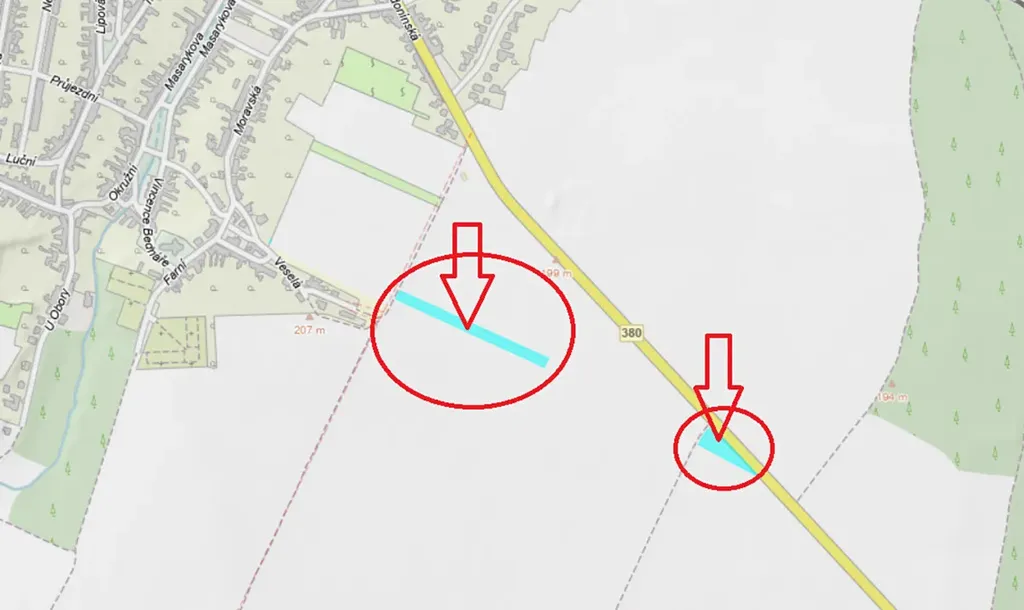 - p.č. 7980 vedená jako orná půda o celkové výměře 2 618 m2, z toho vlastníme podíl 1/4 tedy 655 m2,
