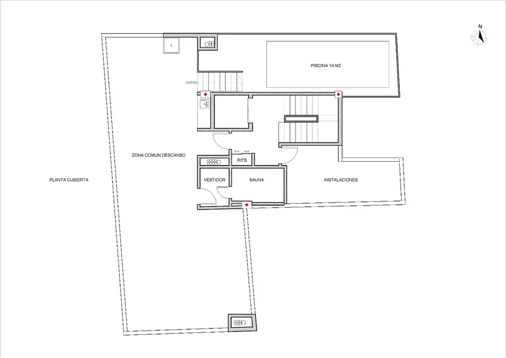 Rezidenti mohou využívat exkluzivní střešní solárium se společným bazénem, grilem, saunou a odpočinkovou zónou s lehátky, přístupné výtahem nebo po schodech.