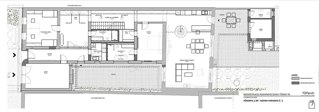 Součástí nabídky je architektonická studie s variantami možných stavebních úprav domu, podkroví i stodoly. Díky nevyužité půdě a stodole nabízí nemovitost zajímavý potenciál pro rozšíření obytné plochy dle vlastních představ.