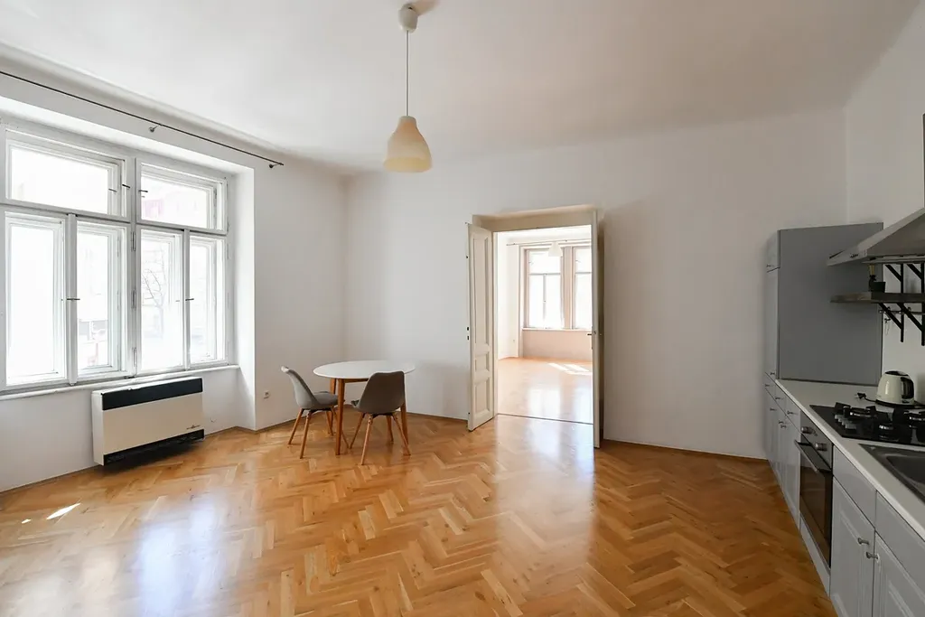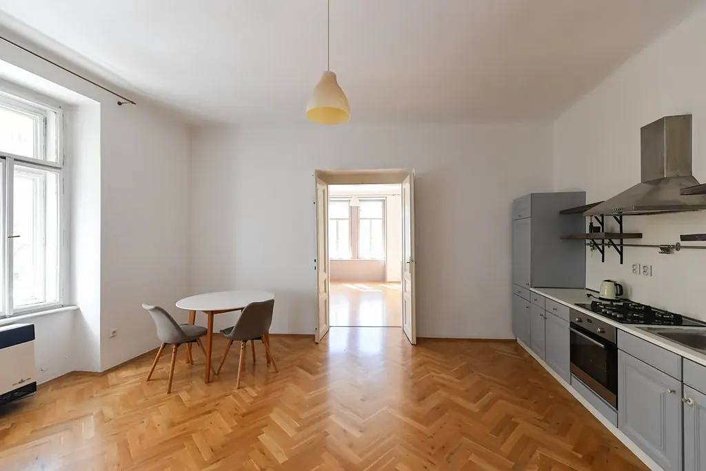 Exkluzivně nabízíme byt o dispozici 2+kk v jedinečném činžovním domě na rohu Slovinské a Kodaňské. J
