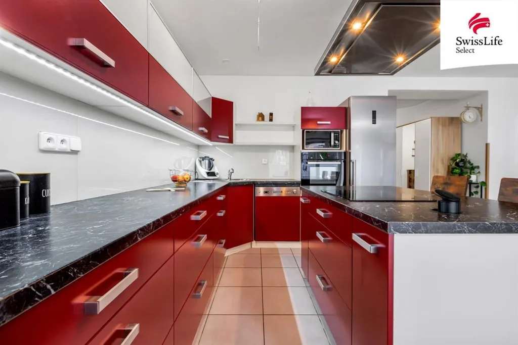 Dům je prostorný (149m2), světlý a klidný. Obývací pokoj s jídelním koutem, moderní kuchyní s ostrůvkem a krbem lákají ke společným chvílím s rodinou.