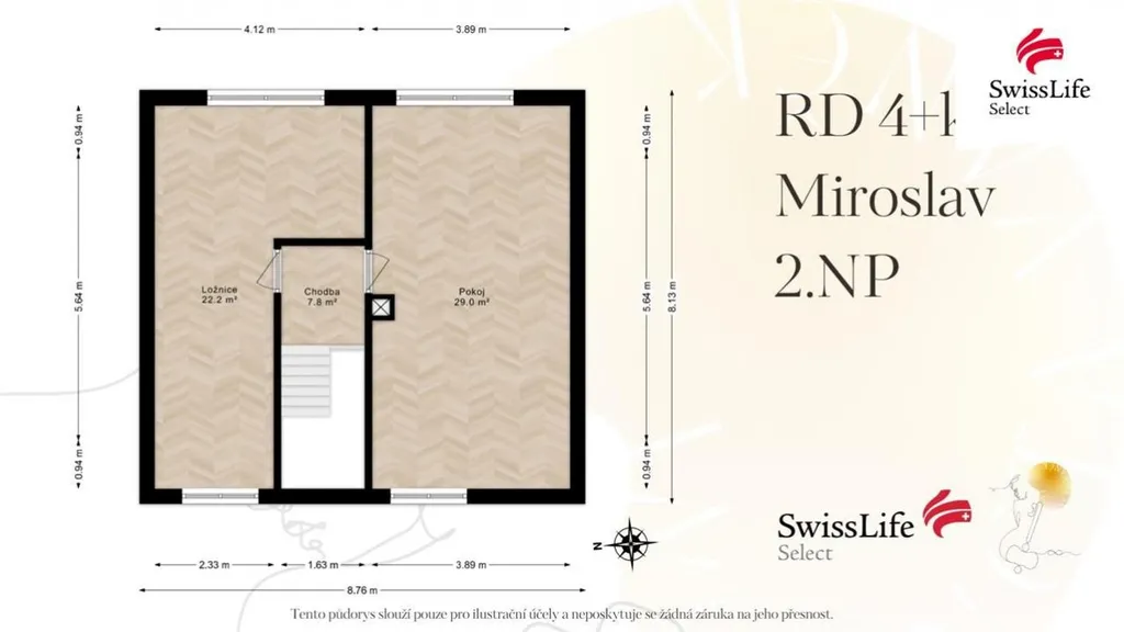 V patře se můžete těšit na další dvě prostorné ložnice.