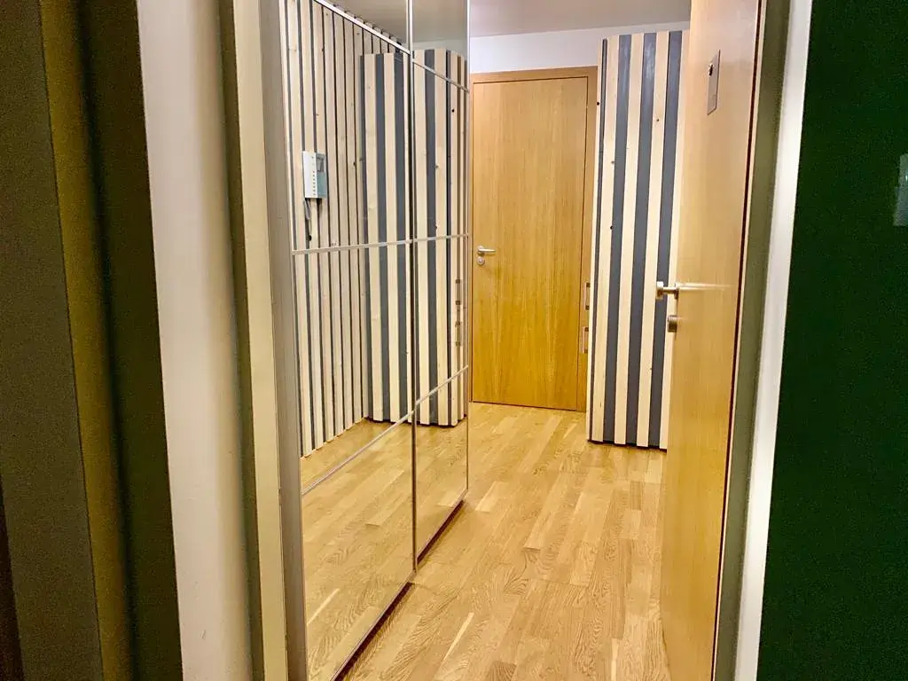 Samostatná ložnice poskytuje dostatek soukromí a klidu, nechybí ani praktické úložné prostory včetně vestavěných skříní a komory. Samozřejmostí jsou dřevěné podlahy a kompletní vybavení, díky kterému je byt připraven k okamžitému nastěhování.