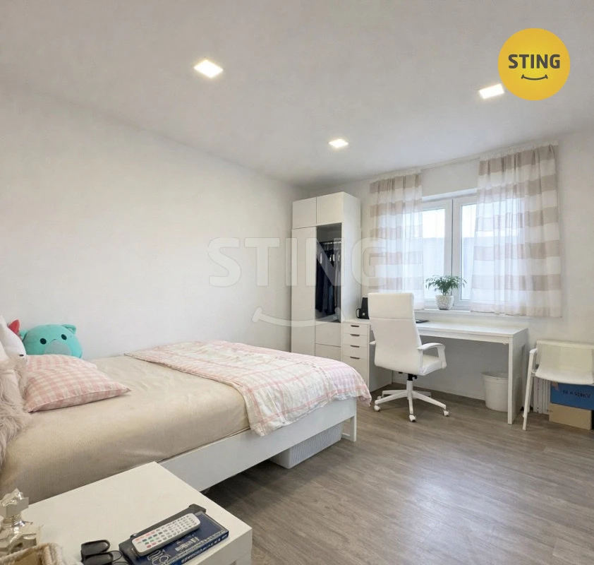 Z obývací části se francouzským oknem dostanete přímo na venkovní posezení a zahradu, která vybízí k relaxaci i rodinným aktivitám. Další velkou výhodou je přímý vstup na zahradu také z ložnice a z jednoho dětského pokoje, a to rovněž francouzskými okny – ideální pro ranní kávu, dětské hry i večerní pohodu.