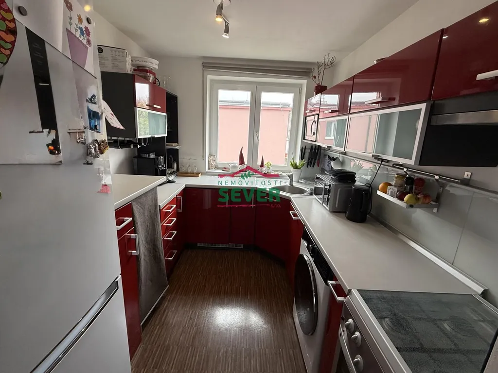 Nemovitosti SEVER vám zprostředkují prodej bytu 3+1, osobní vlastnictví, Chomutov, Zadní Vinohrady, ul. Mostecká. Bytová jednotka po rekonstrukci, o výměře 69 m2, se nachází ve čtvrtém podlaží cihlového domu bez výtahu a jeho součástí je balkón a dvě sklepní kóje. Jsou zde plastová okna, nové rozvody vody, elektřiny, interiérové dveře se zárubněmi, na zemi v pokojích krytina PVC, ve všech místnostech snížené stropy, vestavěná skříň v ložnici a zásuvné dveře. V kuchyni je nová rohová linka obložena dlaždičkami, kombinovaný sporák, myčka na nádobí, mikrovlnná trouba, Koupelna s wc jsou společné ve zděném jádru se zásuvnými prosklenými dveřmi. Je zde vana, wc, skříňka s umyvadlem, přípojka na pračku, plynová karma na ohřev vody, nástěnné topení, odvětrávací okno, celé v keramickém obkladu. V obývacím pokoji zůstává sedací souprava a jídelní stůl se židlemi. Dům bez problémových nájemníků se nachází 5 minut od centra. V případě zájmu zajistíme optimální financování našimi poradci.