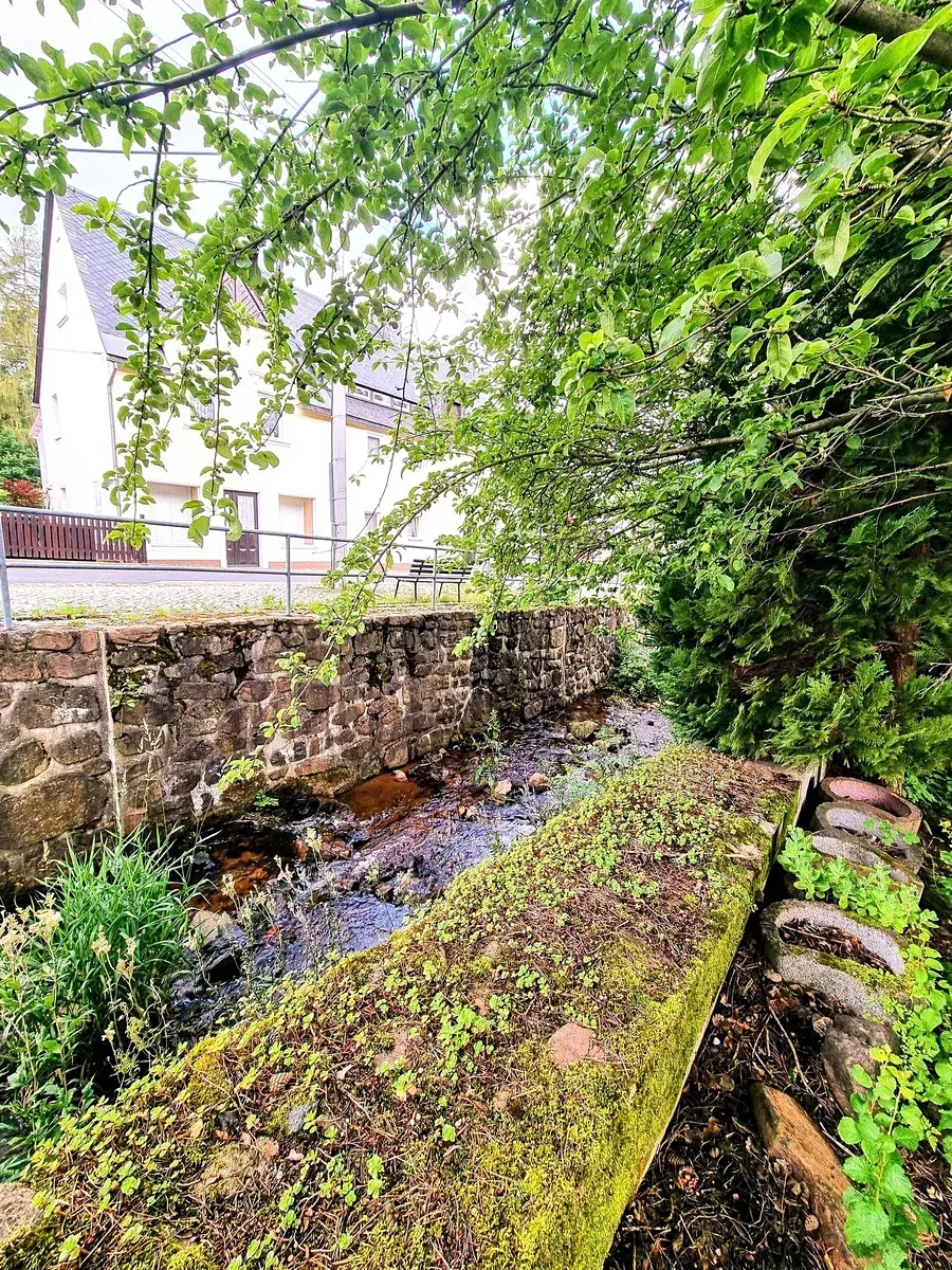 Hranici pozemku tvoří z jedné strany potok, který umocňuje přírodní kouzlo místa, zatímco z druhé strany lemuje pozemek hlavní silnice vedoucí do blízkého centra města. Tato poloha zajišťuje výbornou dostupnost služeb a obchodu, což činí tuto nemovitost atraktivní jak pro rodinné bydlení, tak pro podnikatele hledající výhodnou lokalitu.