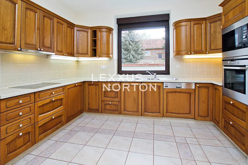 Nabízíme nezařízený dům, jehož součástí je vybavená kuchyň se sklokeramickou deskou, troubou, lednicí, mrazákem, myčkou nádobí a mikrovlnnou troubou. Nemovitost je dále vybavena domácím vrátným, alarmem, protipožárním systémem, pračkou a sušičkou.