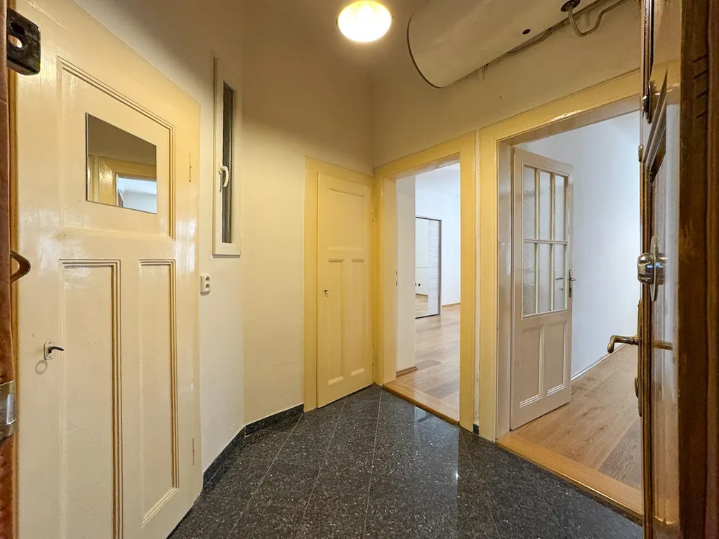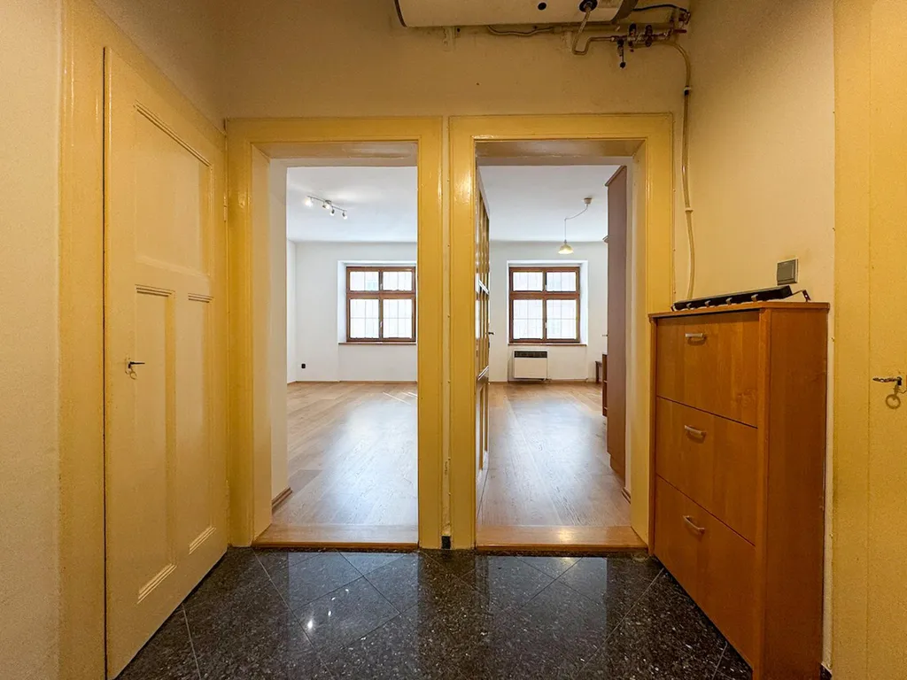 Byt se nachází v 3.NP činžovního domu v ulici U Průhonu, okna z obou místností má do klidné ulice a je v osobním vlastnicví. V posledních letech byl dlouhodobě pronajat, ale je skoro jako nový a čeká na své nové majitele. Dispozice je 2+kk s 48m2. Za vstupními dveřmi do bytu je chodba, odkud je vstup do všech místností bytu. Díky vysokým stropům je zde určitě dostatek místa na vybudování úložných prostor. V pokoji je již vybudovaný kuchyňský kout a na 18m2 zbývá dostatek místa pro posezení a vybavení obývacího pokoje. V ložnici s 20m2 je již vestavěná skříň a ostatní vybavení již záleží na Vás.
