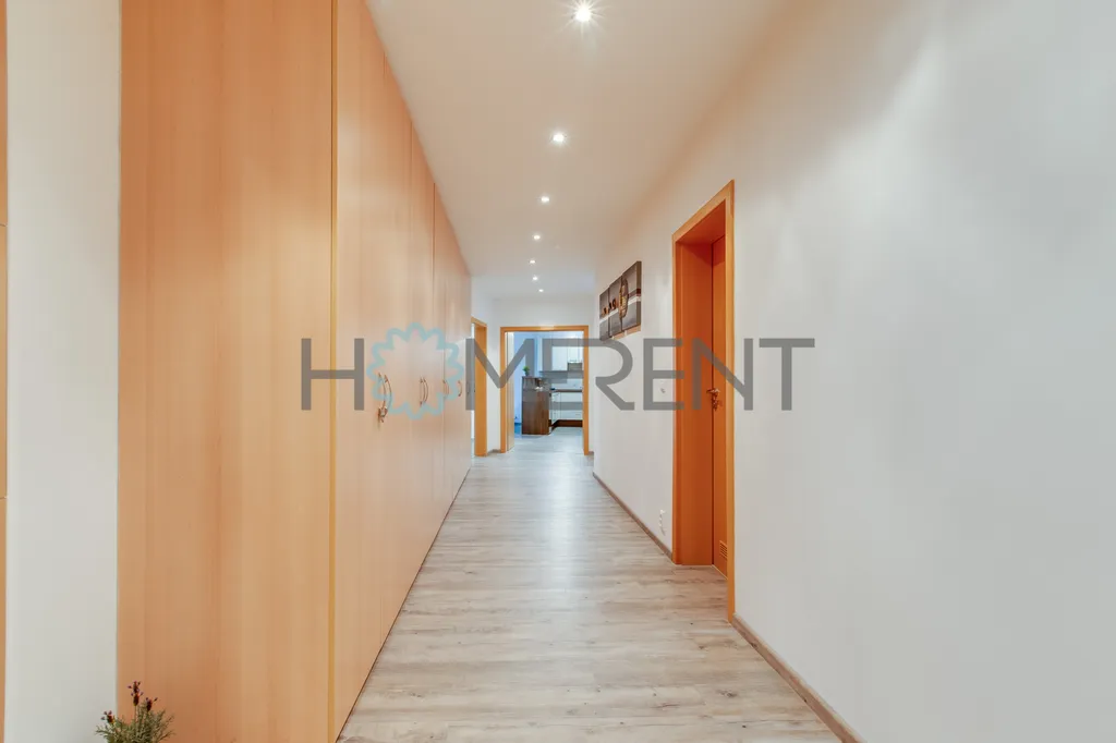 Byt se nachází ve 2. nadzemním podlaží moderního bytového domu s výtahem a nabízí podlahovou plochu 109 m². K bytu dále náleží balkon o velikosti 12 m², takže celková užitná plocha činí 121 m². Součástí pronájmu jsou také dvě parkovací stání, což výrazně zvyšuje komfort každodenního bydlení.