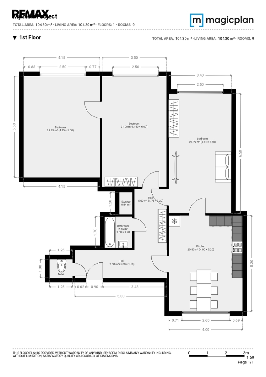 Dispozice bytu potěší především milovníky prostoru – jednotlivé pokoje jsou nadstandardně velké, mají praktický čtvercový tvar a díky velkým oknům jsou příjemně prosvětlené. Byt je částečně vybaven – k dispozici jsou šatní skříně jak v chodbě, tak i v pokojích, což zajišťuje dostatek úložného prostoru. Koupelna disponuje vanou a umyvadlem, toaleta je oddělena, což zvyšuje komfort bydlení.