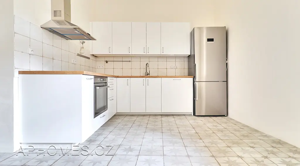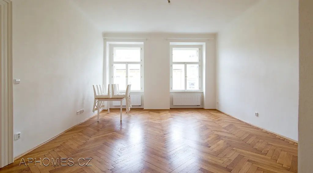 Byt o celkové ploše 105 m² se nachází ve třetím nadzemním podlaží bytového domu, v centru Prahy v blízkosti Palackého Náměstí.