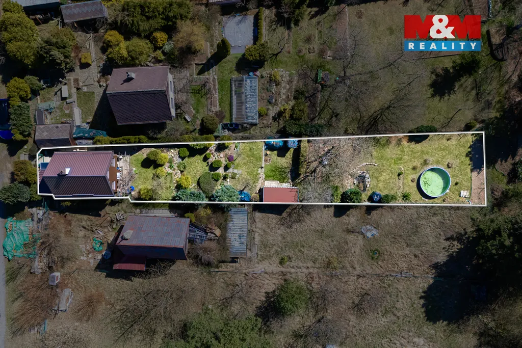 Na pozemku se nachází bazén, skalky, okrasná zahrádka i dvě boudy na materiál a samozřejmostí je také parkování přímo u nemovitosti. Lokalita je ideální pro milovníky přírody a procházek – okolí nabízí klid, zeleň a krásné trasy.
