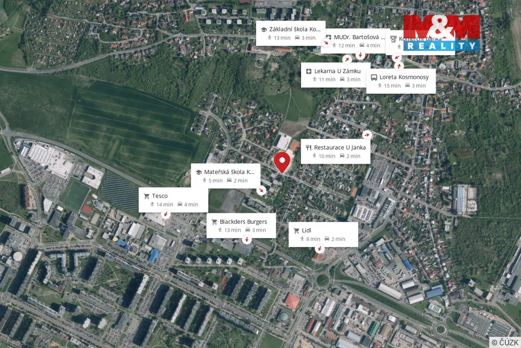 Kosmonosy jsou vyhledávanou lokalitou v těsném sousedství Mladé Boleslavi s kompletní občanskou vybaveností. V blízkosti se nachází mateřská i základní škola, obchody, lékárna, restaurace, sportoviště i zeleň pro volnočasové aktivity. Místo nabízí klidné bydlení s rychlou dostupností do větších měst. Mezi zajímavosti patří historický kosmonoský zámek, kaple Loreta či oblíbené cyklostezky v okolí. Byt je vhodný pro vlastní bydlení i jako investice.