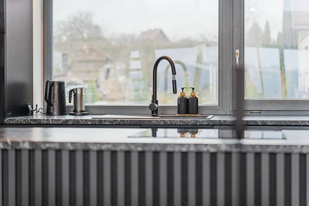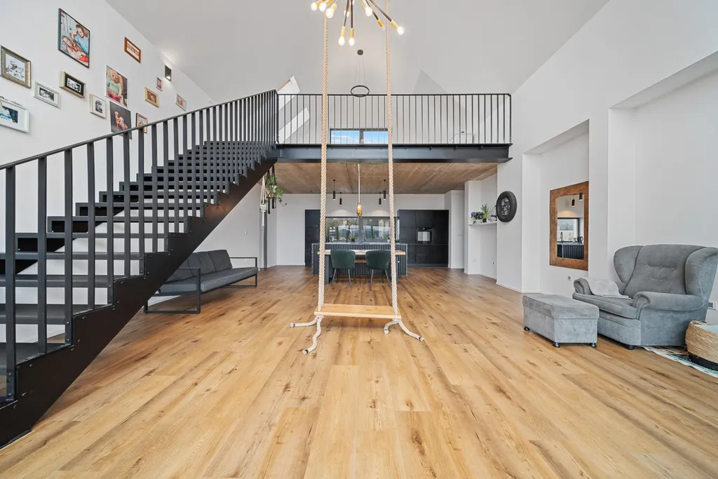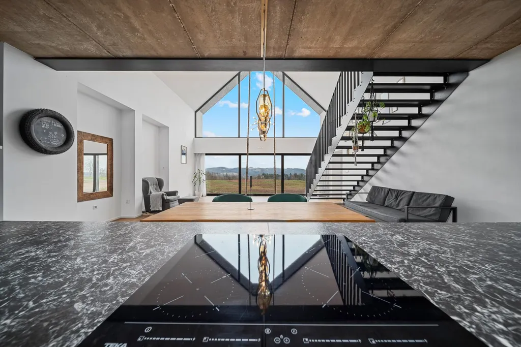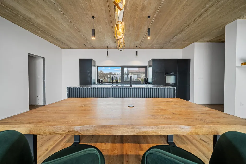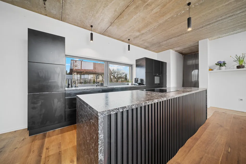 Špičkové provedení: Architektonicky nápadná budova. Stavba z kvalitních materiálů s promyšlenou dispozicí do posledního detailu. Úžasná kuchyňská linka s deskou z přírodního kamene.