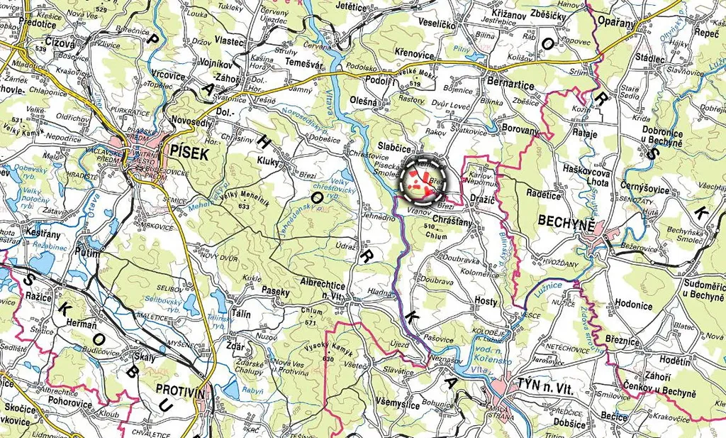 Předmětem prodeje je majoritní vlastnictví na parcelách zapsaných na LV 55 v KÚ Písecká Smoleč, obec Slabčice, okres Písek.