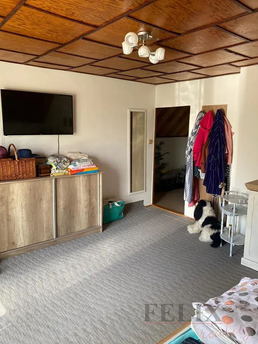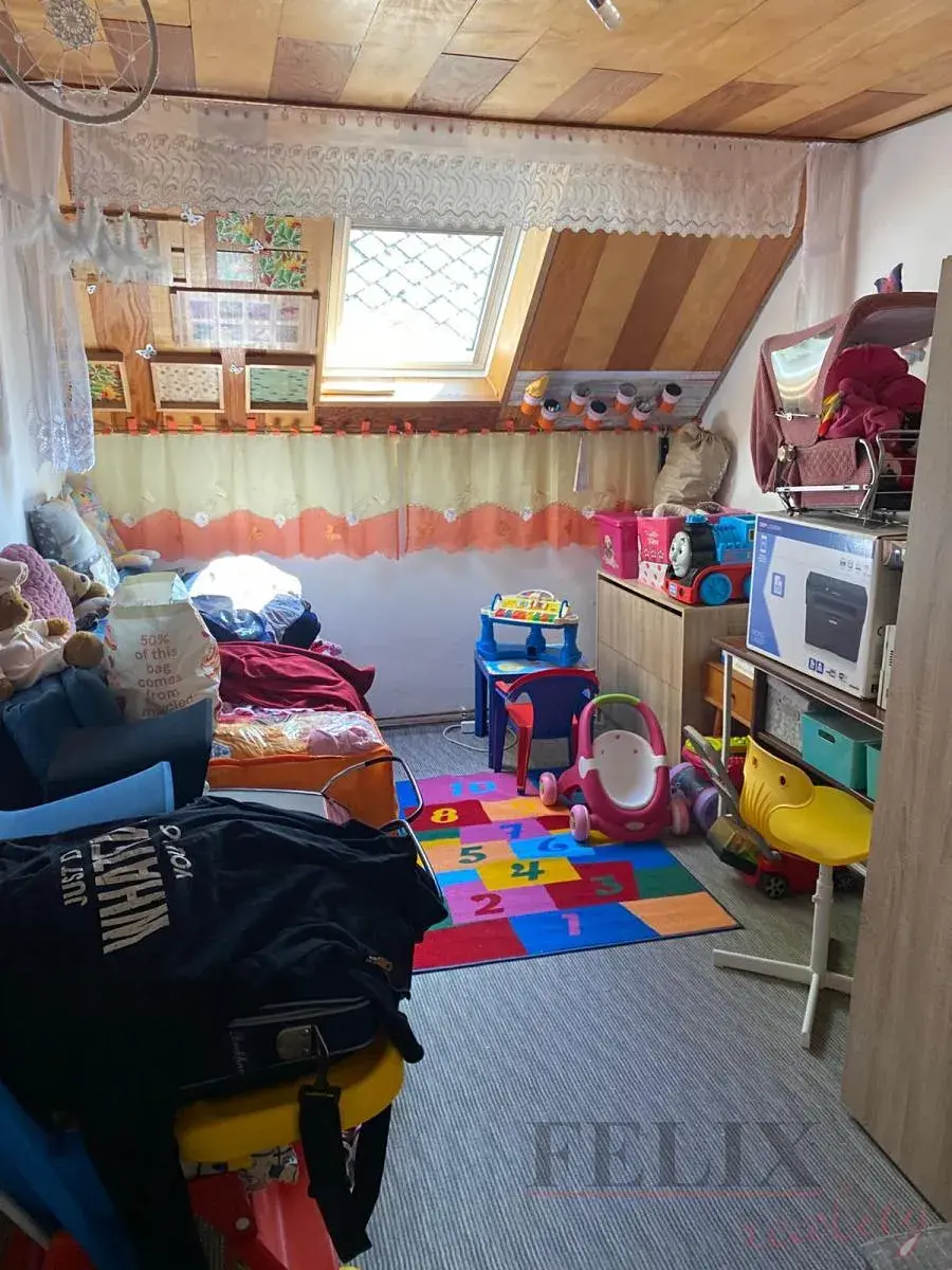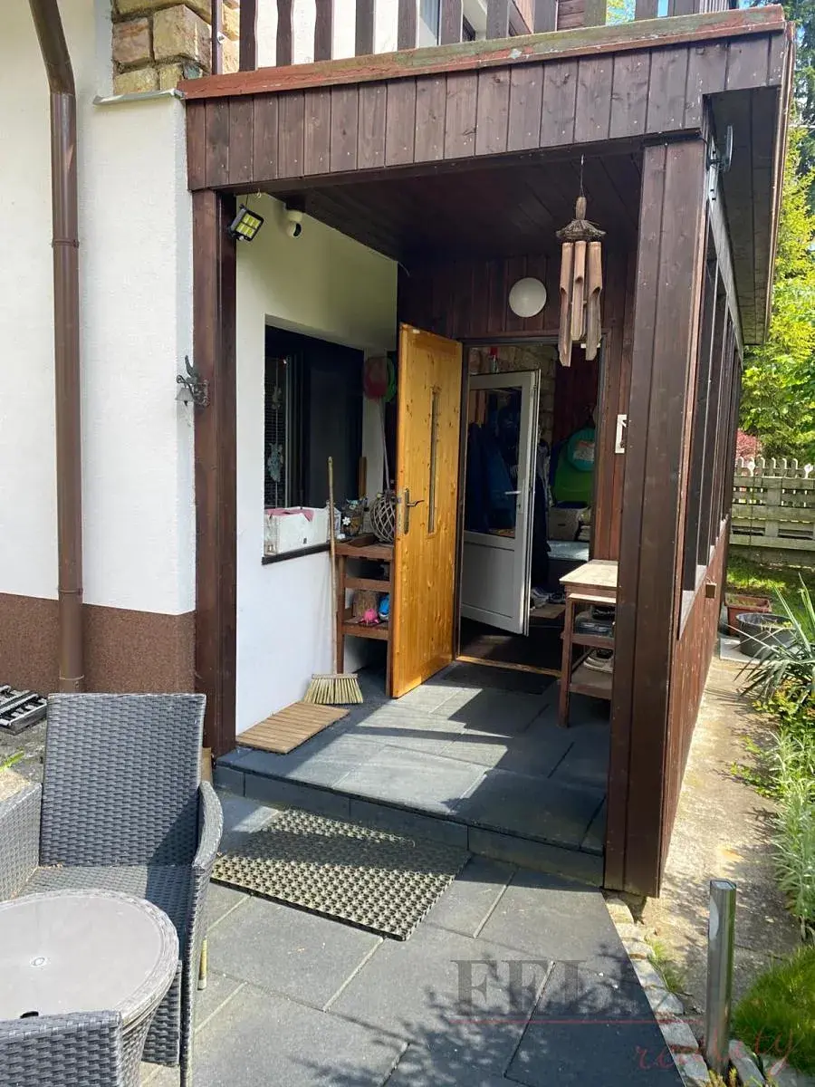 Celková výměra pozemku činí 400m2. V přízemí je umístěna zastřešená terasa se zádveřím, obývací pokoj s krbem, vybavená kuchyně a sociální zázemí. V poschodí 3 neprůchozí ložnice.