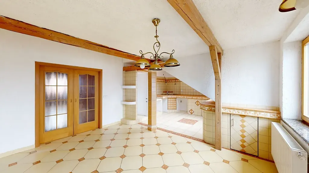 Prostorná kuchyně s jídelnou (26,95 m²): Místnost s dostatkem prostoru pro velký jídelní stůl i moderní kuchyňskou linku.