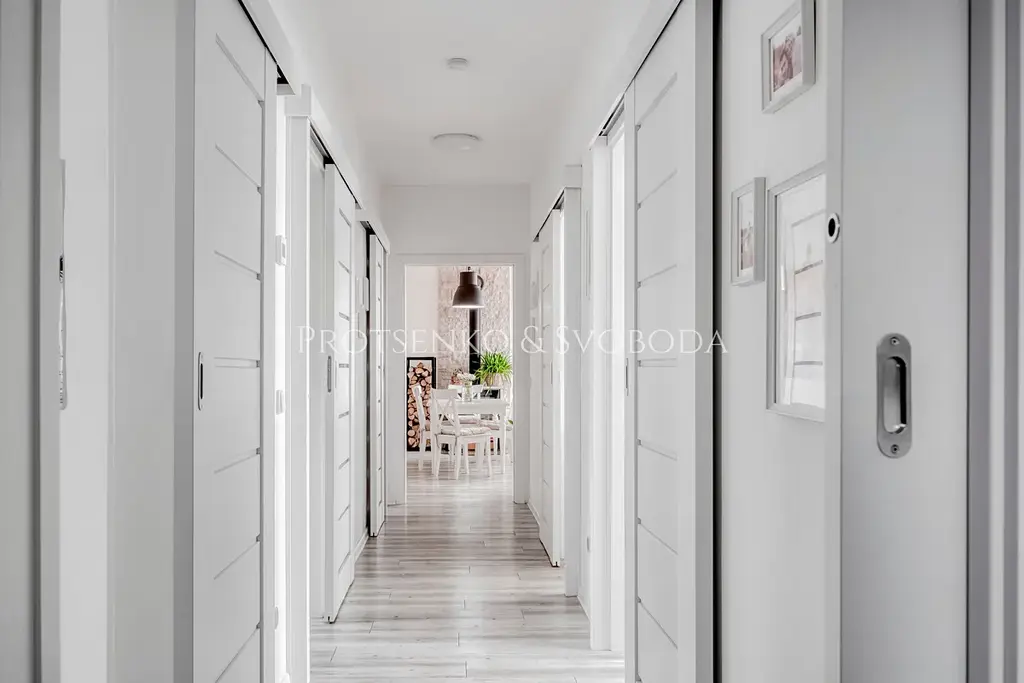 Uvnitř domu vás přivítá promyšlená dispozice 4+kk, navržená tak, aby nabídla komfort každodenního života i dostatek soukromí pro každého člena rodiny. K dispozici je šatna, špajz, koupelna se sprchovým koutem, samostatná toaleta a tři ložnice, které působí klidně, útulně a harmonicky.