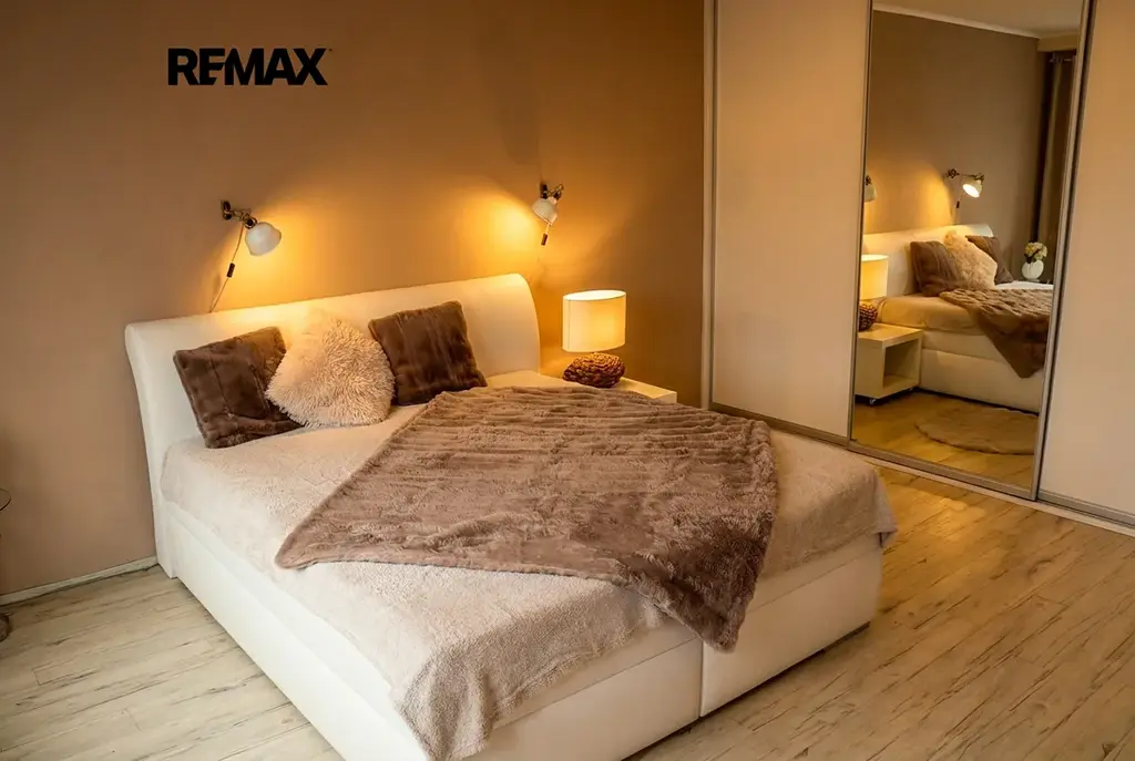 • Ložnice jako oáza klidu: Najdete tu postel pro váš dokonalý odpočinek a šatní skříň přes celou stěnu, do které se konečně vejde celý váš šatník.