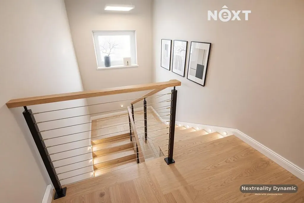 V patře se nachází tři samostatné pokoje, které poskytují dostatek soukromí pro každého člena rodiny. Praktické řešení doplňuje technická místnost a dvě koupelny – jedna se sprchovým koutem, druhá s vanou.