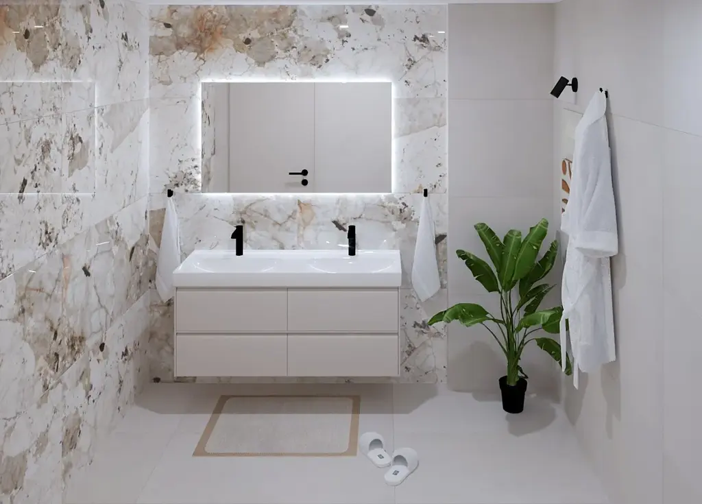 Návrh interiéru bytu je zpracován od firmy ARBYD a koupelny od společnosti ProCeram. Lze využít již hotové návrhy nebo navrhnout své vlastní interiérové řešení.