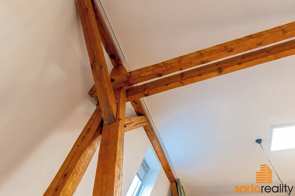 Při rekonstrukci, včetně těch zásadních instalací jako jsou nové rozvody elektra, topného systému, vodoinstalací a zateplení, zde byly položeny podlahové krytiny, osazen moderní plynový kondenzační kotel Wiessmann, zrenovovány přiznané trámové konstrukce a SDK podhledy aj. Dále zde najdete prostornou koupelnu s WC a sprchovým koutem, které dominuje designová prosklená zašupovací stěna. Okna jsou převážně dřevěná + střešní. K vyššímu standardu dnes patří i elektronické zabezpečovací zařízení. Na míru zhotovená kuchyňská linka je včetně vestavěných spotřebičů - sklokeramic. deska Gorenje, myčka Indesit, horkovzdušná trouba aj. Hlavní obytný prostor bytu je orientován na západ, pohledem na univerzitní kampus UJEP, koupelna a kuchyně jsou orientovány na východ do vnitrobloku.