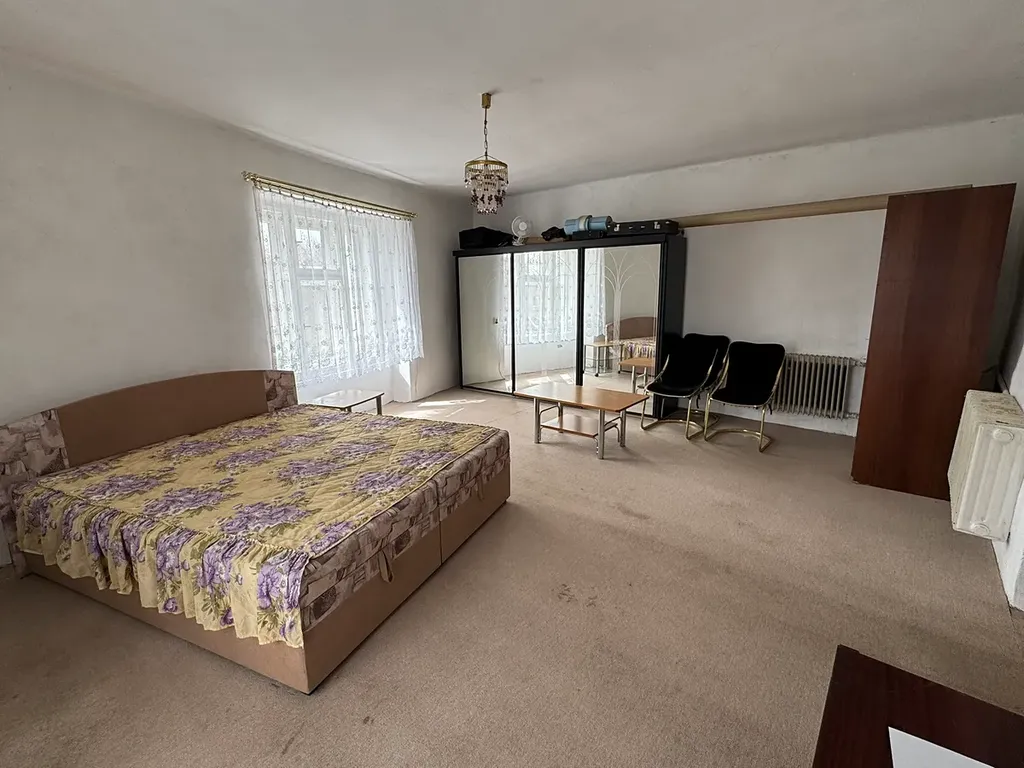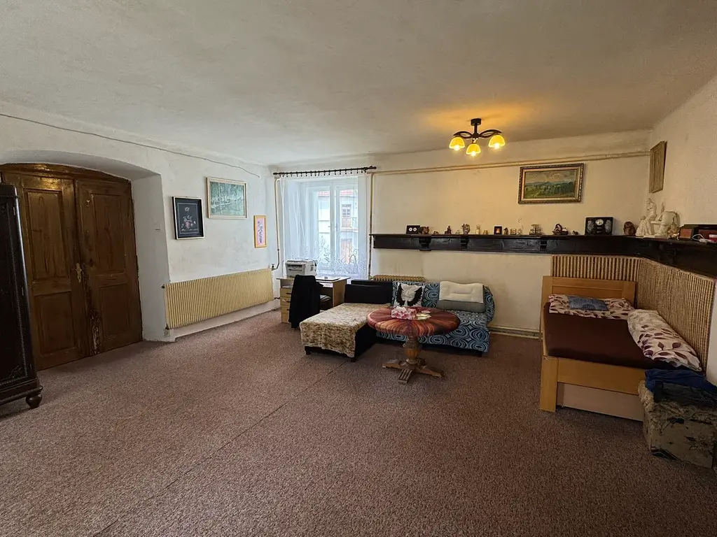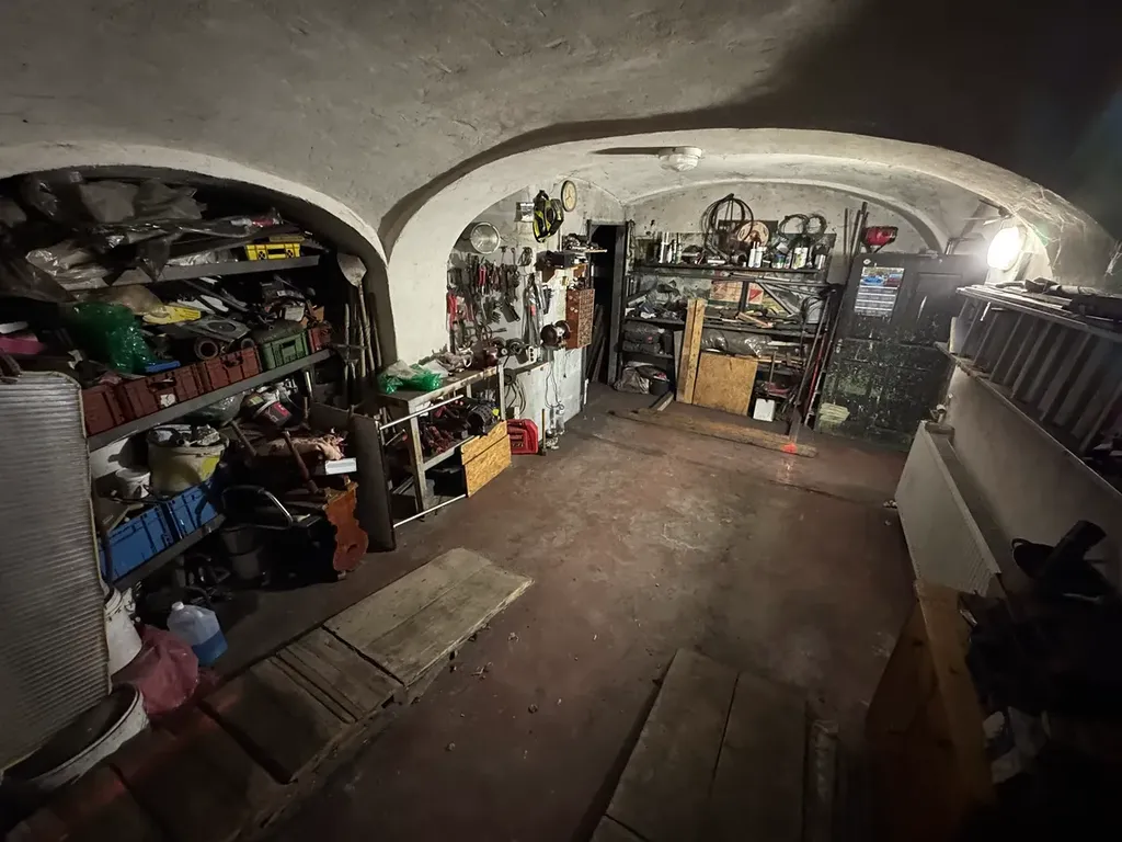 Dominantou přízemí je velkorysý pokoj s nádhernými historickými klenbami, který doplňuje samostatná kuchyně a koupelna. Toto podlaží prošlo zásadní modernizací, v rámci které byly položeny nové podlahy, provedena důkladná izolace a instalováno komfortní podlahové vytápění. Praktickou část přízemí tvoří dále kotelna, prostorná garáž a sklad na uhlí. Horní patro domu disponuje velkým obývacím pokojem, prostornou ložnicí, dalším menším pokojem, kuchyní a koupelnou. Příjemným bonusem horního bytu je zastřešený balkon, který vybízí k odpočinku.