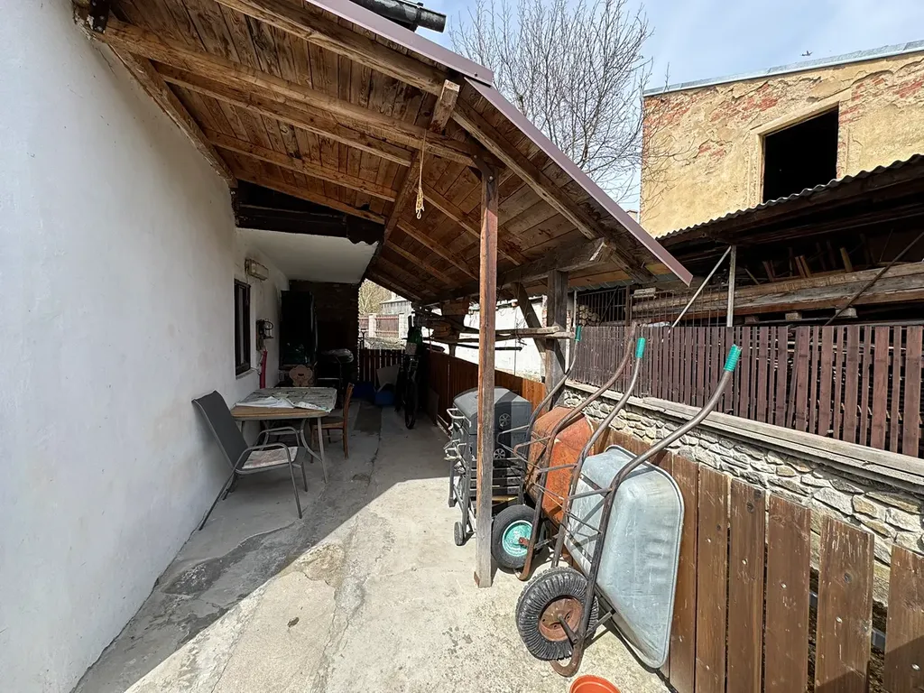 Repasovaná dřevěná okna osazená izolačními dvojskly. Vytápění je řešeno velmi efektivně kombinací automatického kotle na uhlí a plynového kotle, přičemž dům je samozřejmě napojen na obecní vodovod i kanalizaci. K objektu náleží dvůr o výměře 119 m2, jehož součástí je příjemná pergola situovaná přímo u potoka. Poloha domu je skutečně unikátní, neboť se nachází v klidné zóně mezi potokem a řekou, což zajišťuje příjemné prostředí a dostatek soukromí.