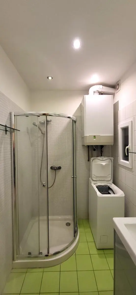 Koupelna je se sprchovým koutem a umyvadlem, vč. pračky, WC samostatné.