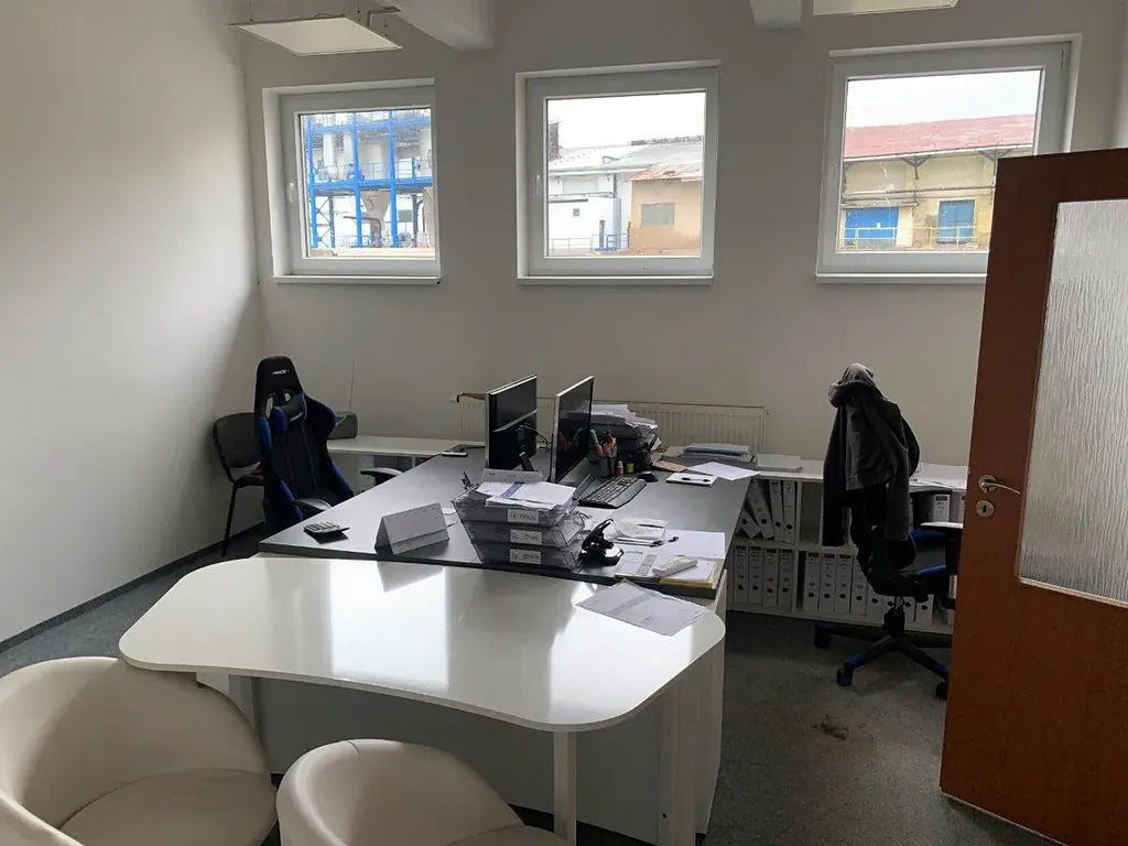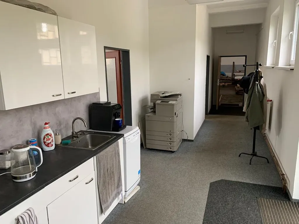 V budově jsou k dispozici kanceláře se sociálním zázemím.