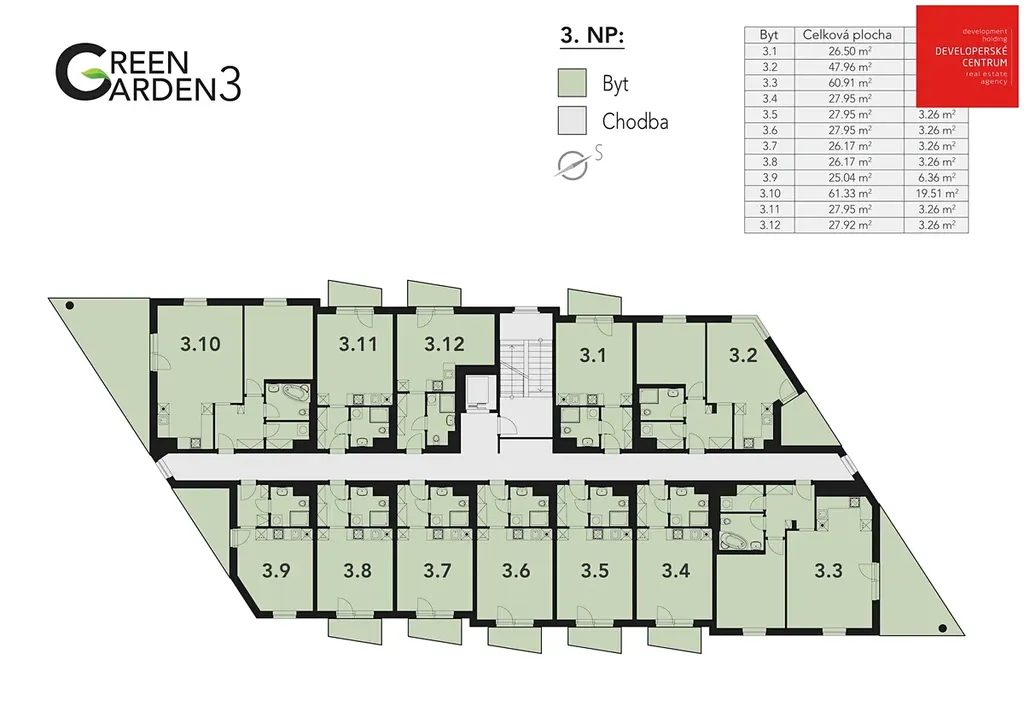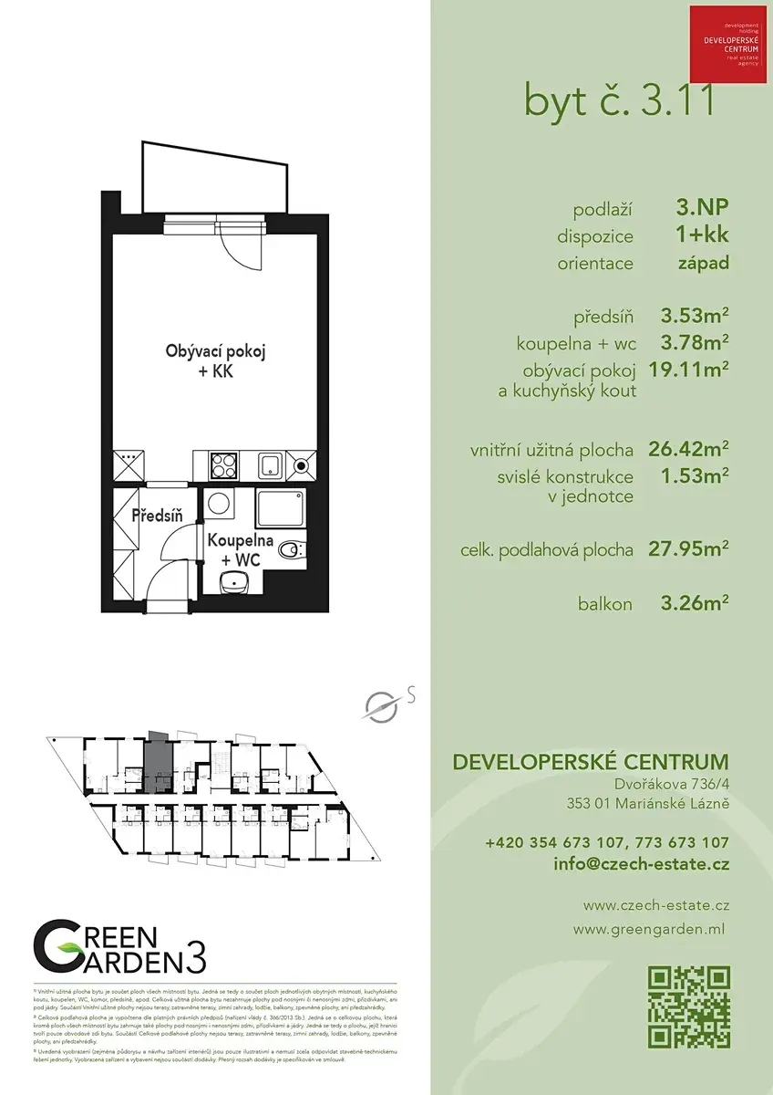 Nabízíme Vám možnost koupě bytů ve 3.etapě úspěšného projektu Green Garden v Mariánských Lázních. Projekt Green Garden 3 je vyprojektován jako maximálně úsporný objekt, a to z hlediska zateplení (PENB, třída B), tak i systému vytápění, který bude tvořen energetickým mixem díky plynovým kotlům a tepelným čerpadlům. V nabídce jsou byty dispozice 1+kk, 2+kk a 3+kk, a nově i přízemní byty s prostornými předzahrádkami. Po dohodě lze pro budoucí majitelé připravit byty dle vlastní dispozice a požadavků. Dále si budoucí majitelé mohou zakoupit sklepní kóji nebo parkovací stání v areálu. Projekt Green Garden 3 se nachází ve velmi klidné lokalitě centra města na hranici lesa a blízko nákupně-administrativní zóny Nová Chebská. Dle obvyklého standardu developera jsou byty vybaveny kvalitními zařizovacími předměty (podlahy, dveře, koupelny), celý budoucí areál bude oplocen, hlídán kamerovým systémem a součástí areálu bude samozřejmě i dětské hřiště, vše v těsném sousedstvím s parkem a lesem. Kolaudace je naplánovaná nejpozději do konce 1. kvartálu 2027. Kompletní nabídka volných bytů včetně ceníku a podrobných informací je k dispozici na naších webových stránkách.